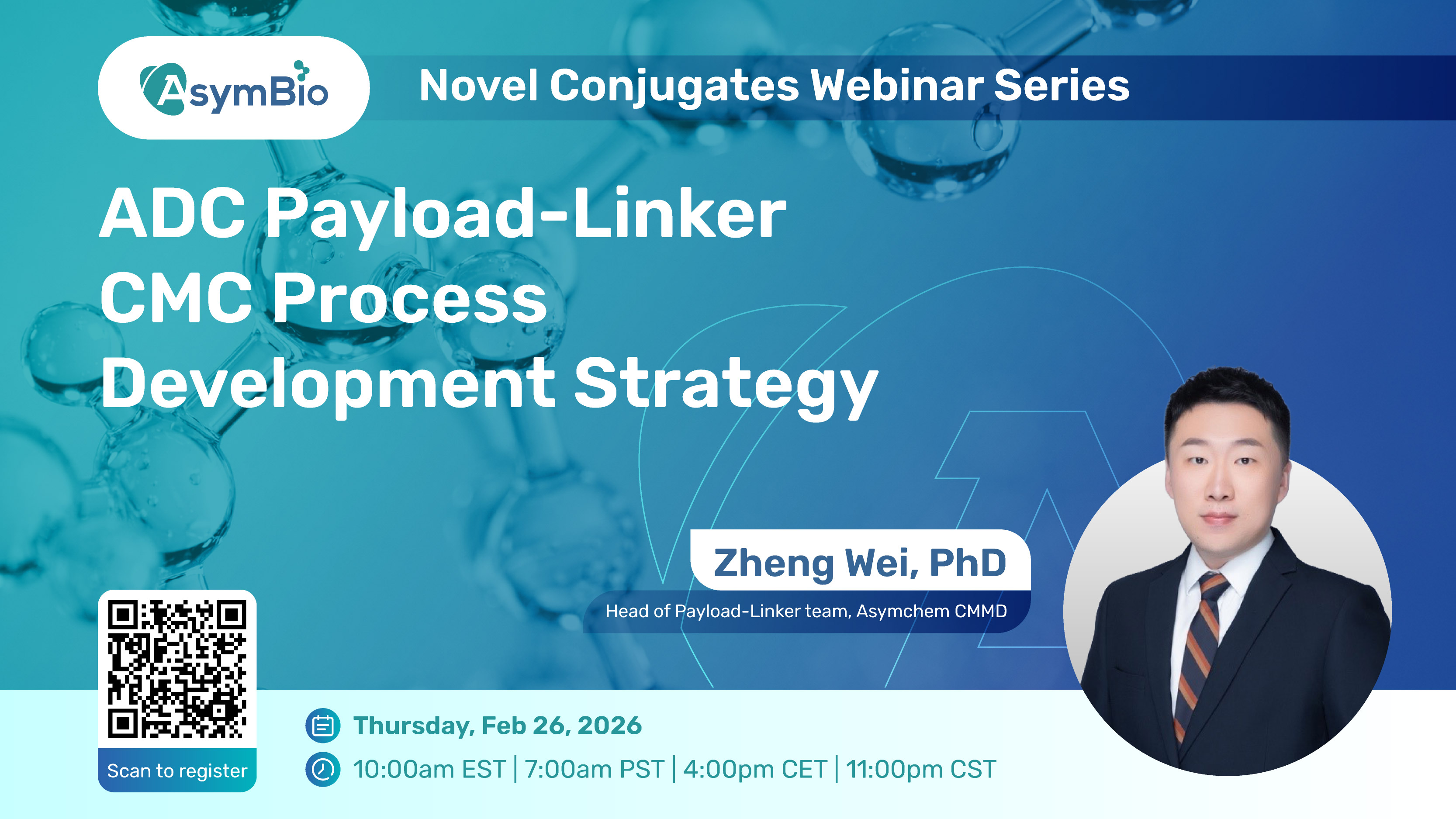 Join us for an in-depth and practical webinar where Dr. Zheng Wei, Head of Payload-Linker Team at Asymchem CMMD, will share real-world insights on payload–linker CMC development across the entire lifecycle—from clinical development to commercial registration.